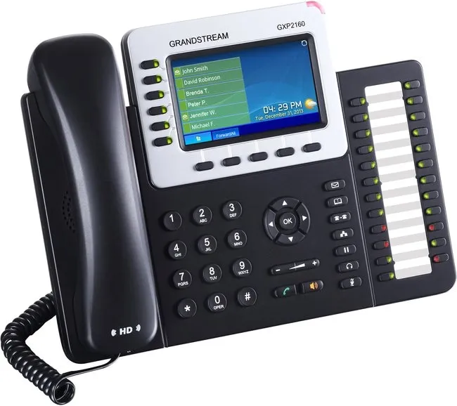 | Комплектация | IP-телефон Grandstream GXP2160 / телефонная трубка со шнуром / основание / универсальный блок питания / Ethernet кабель / документация |
