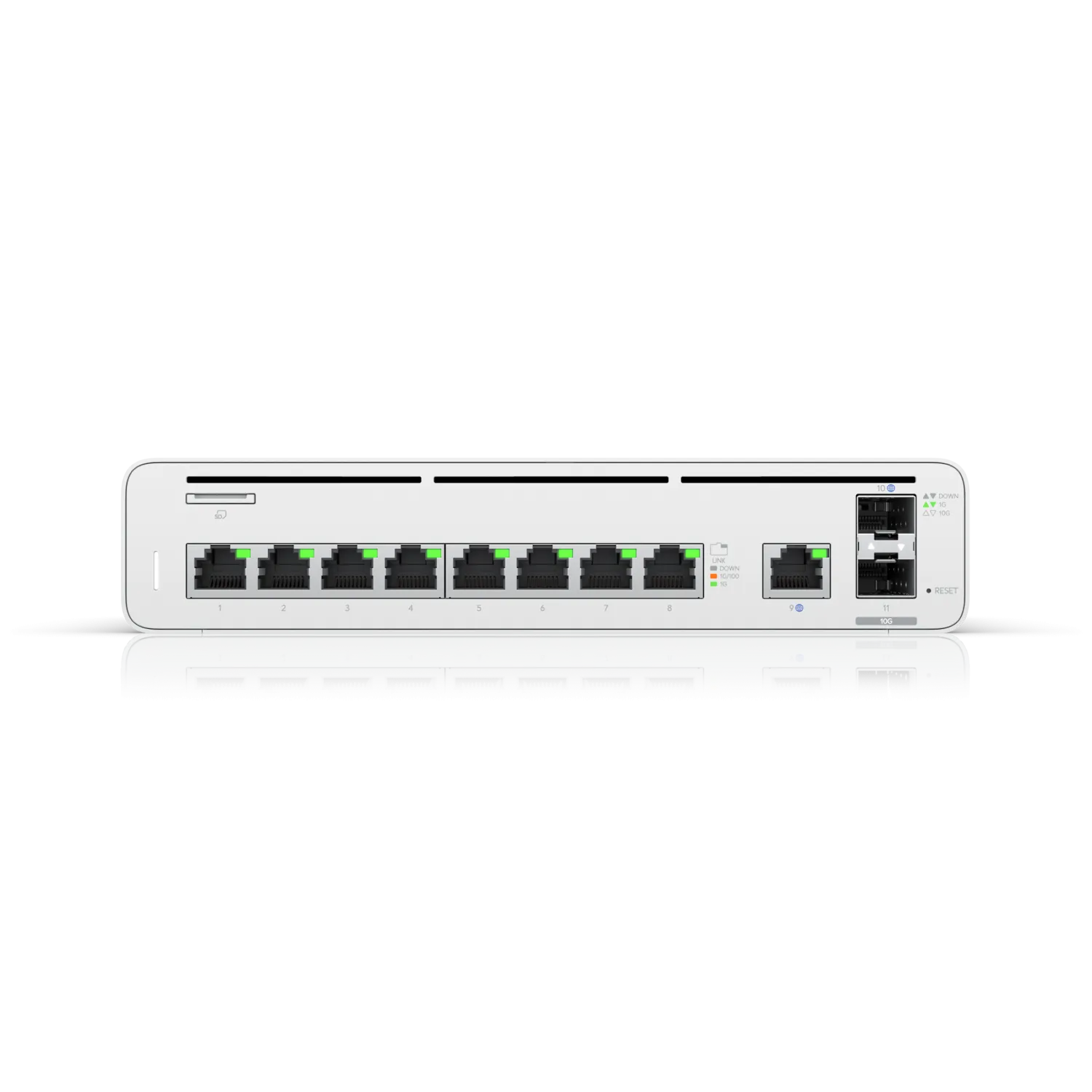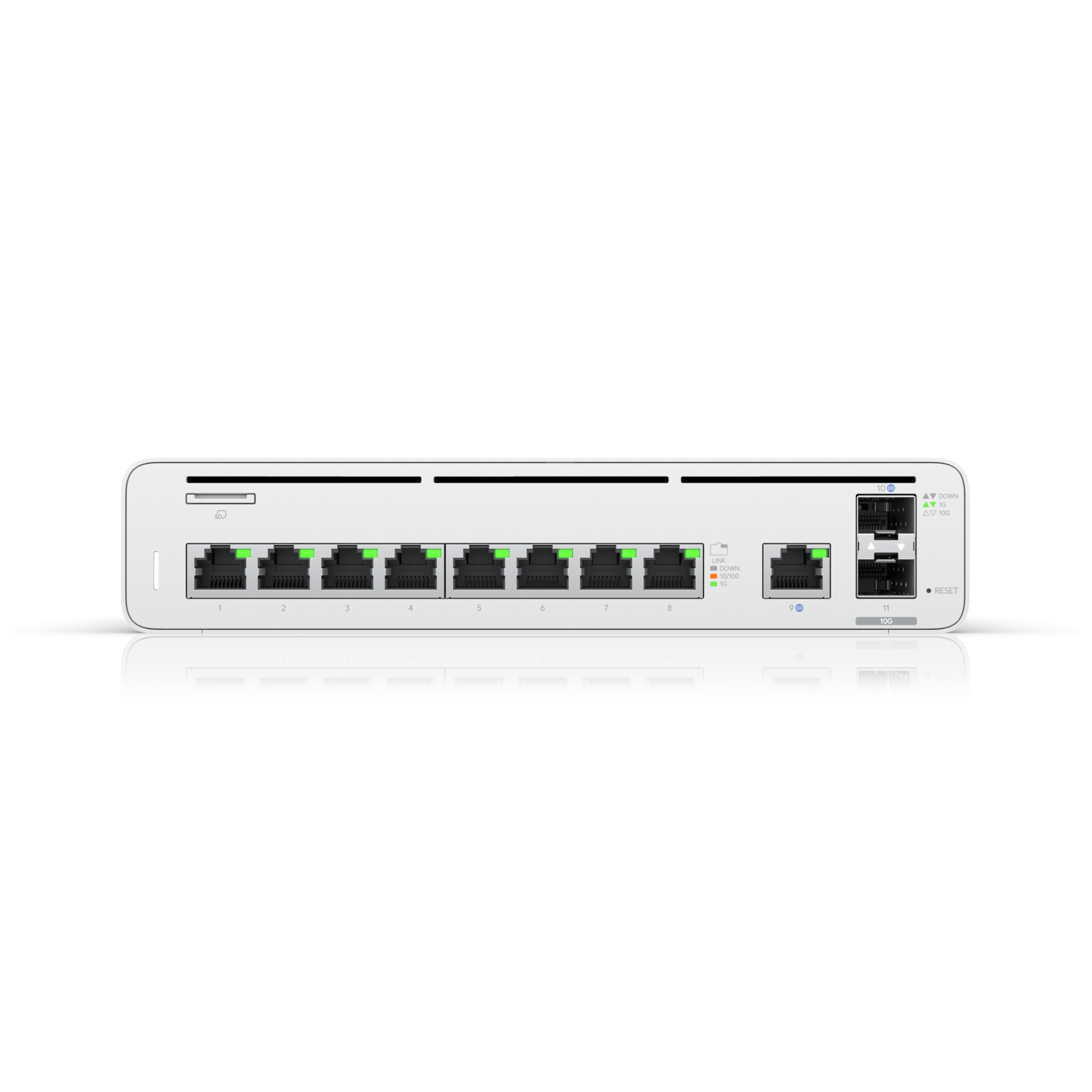 | Порты и интерфейсы | (1) microSD (Up to 2TB) / (8) LAN: GbE RJ45 / (1) LAN: 1/10G SFP+ / (1) WAN: GbE RJ45 / (1) WAN: 1/10G SFP+ |
