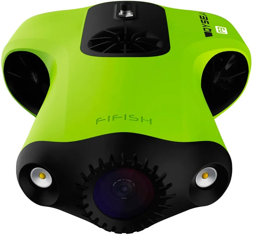 Подводный дрон Qysea Fifish P3 станет вашим надежным компаньоном при съемке на дне моря или океана. Высокопрочный корпус позволяет аппарату опускаться на глубину до 100 метров, а два мощных LED-прожектора по 2000 люмен каждый обеспечат яркие насыщенные кадры. Съемка осуществляется при помощи 20-мегапиксельной оптики, оснащенной дюймовой CMOS-матрицей от Sony. Модель позволяет производить видеофиксацию в 4K-разрешении.