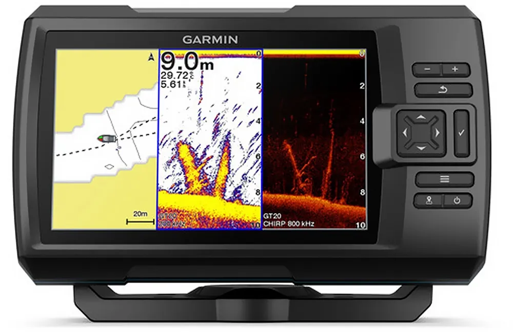 Garmin Striker Plus 7cv представляет собой рыбопоисковый эхолот со встроенным GPS-приемником, позволяющим контролировать скорость судна во время траления, а также отмечать маршрутные точки, трансдьюсером с креплением на транец, Wi-Fi модулем для синхронизации со смартфоном, получения обновлений и обмена путевыми точками в сообществе пользователей Garmin QuickdrawTM.