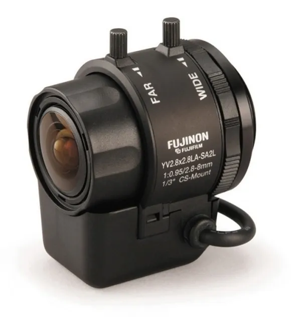 Трехмегапиксельный варифокальный объектив Fujinon YV2.8X2.8SA-SA2L совместим с аналоговыми и IP-камерами с матрицей 1/3", 1/4". Он подходит для установки как в цветных, так и в черно-белых моделях. При заданном 16:9 соотношения сторон можно добиться более широкоугольного слежения. Качественная оптика при фокусном расстоянии 2.8-8 мм позволяет достигнуть 2.8-кратного увеличения с прекрасной детализацией без потери качества.