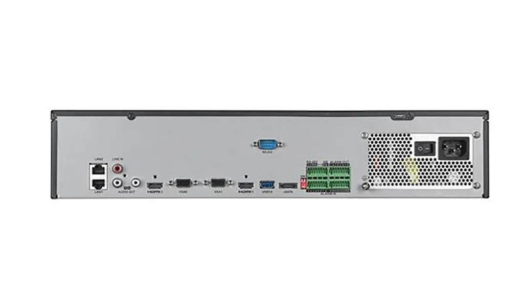 | Порты и интерфейсы | 3 × RCA / 2 × VGA / 2 × HDMI / 2 × LAN / 1 × USB 3.0 / 2 × USB 2.0 / 1 × RS232 / 1 × eSATA / 1 × Тревожный вход/выход / 1 × IEC 320 C13 / 1 × RS-485 |